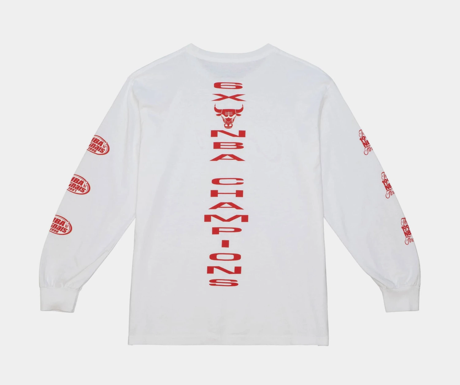 Show off your team pride in this Chicago Bulls White CHERRY BOMB Long Sleeve T Shirt! This Chicago Long Sleeve Tee features a screen print team logo and NBA Finals decorations on back and sleeve.