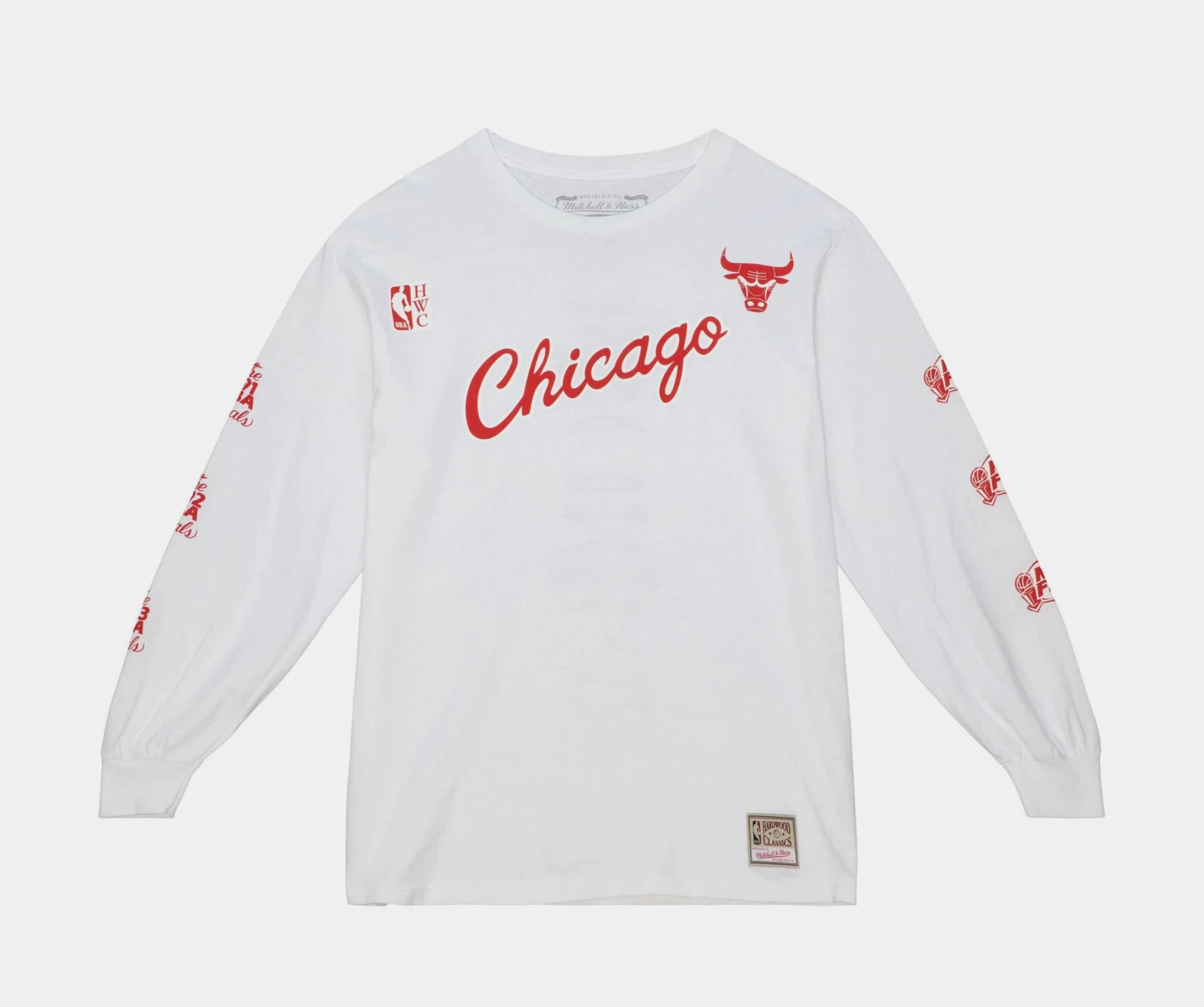 Chicago Bulls Cherry Bomb Mens Long Sleeve Shirt (White)