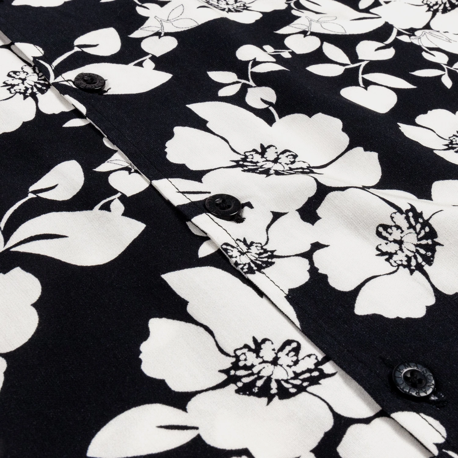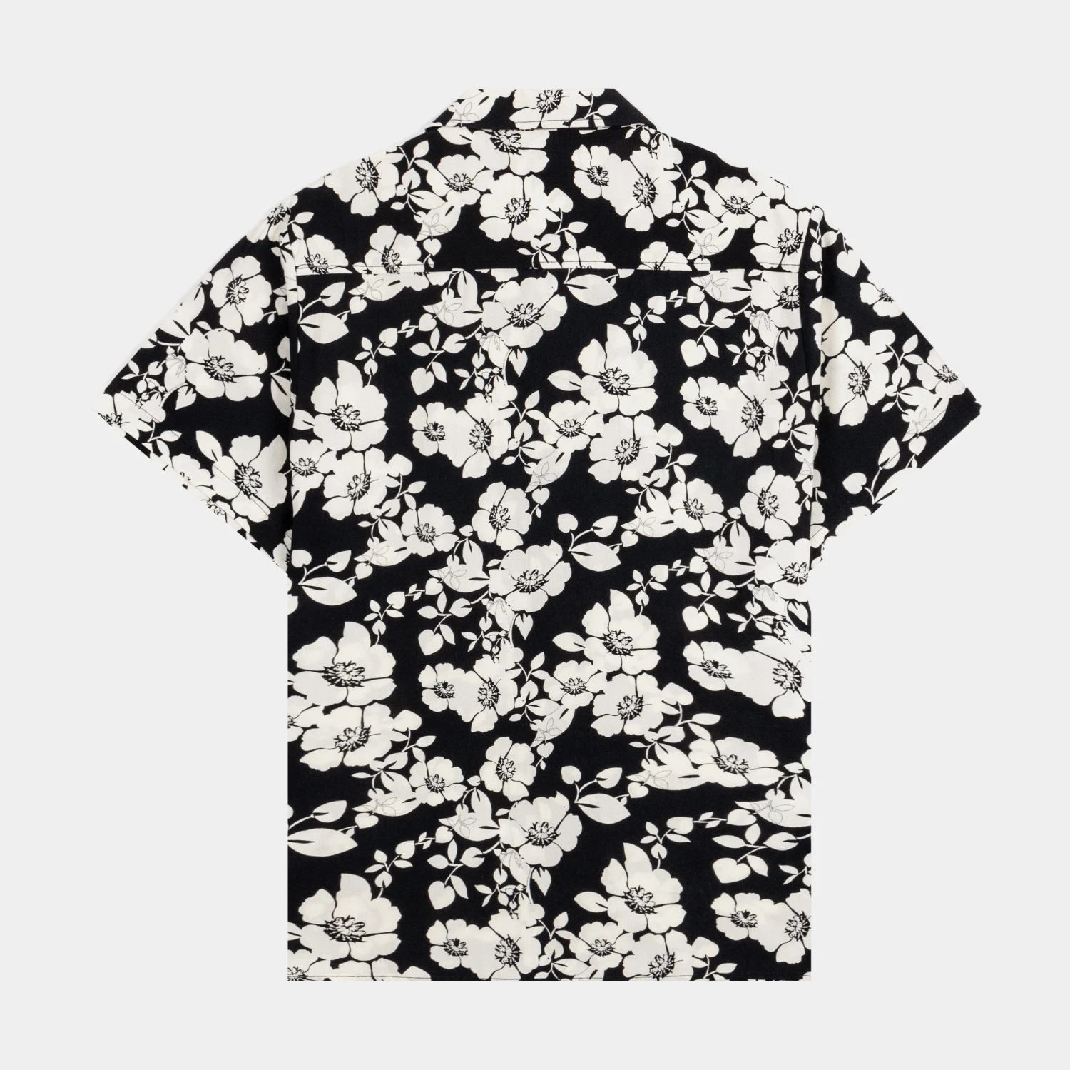 Florals Woven Rayon Mens Short Sleeve Shirt (Black/White)