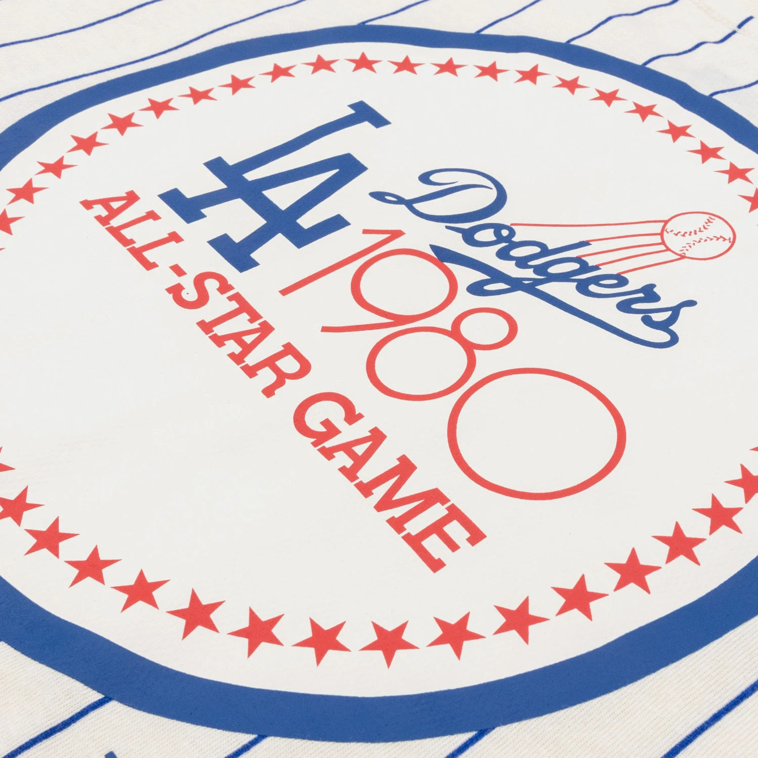 This Los Angeles Dodgers Throwback Short Sleeve Shirt features an embroidered team logo on the front with the 1980’s All Star Game logo on the back. The classic pin stipe print give this tee a vintage feel.