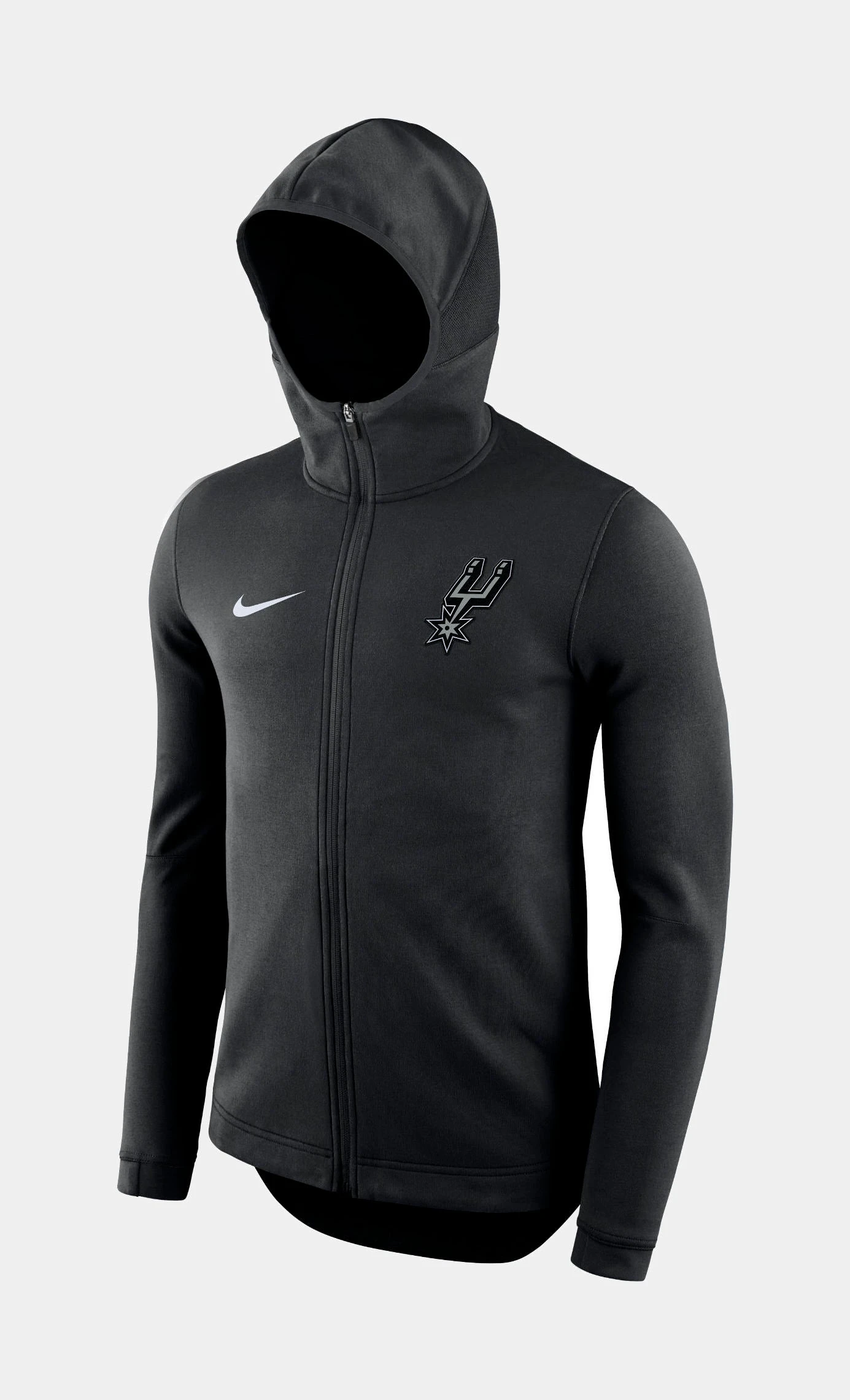 Stay warm all year round while you rock the authentic On-Court look of your team with the Nike® San Antonio Spurs Full-Zip Hooded Fleece with Dri-FIT® technology.