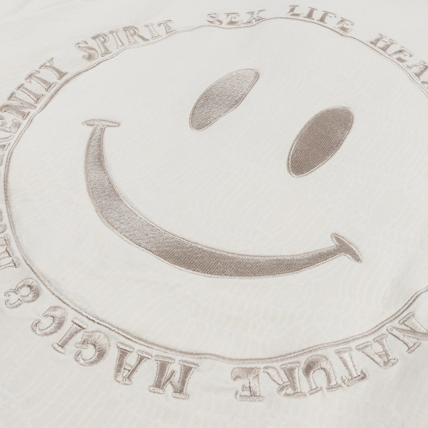 SP X Gilbert Baker Smiley Face Terry Button Up Mens Short Sleeve Shirt (Beige)