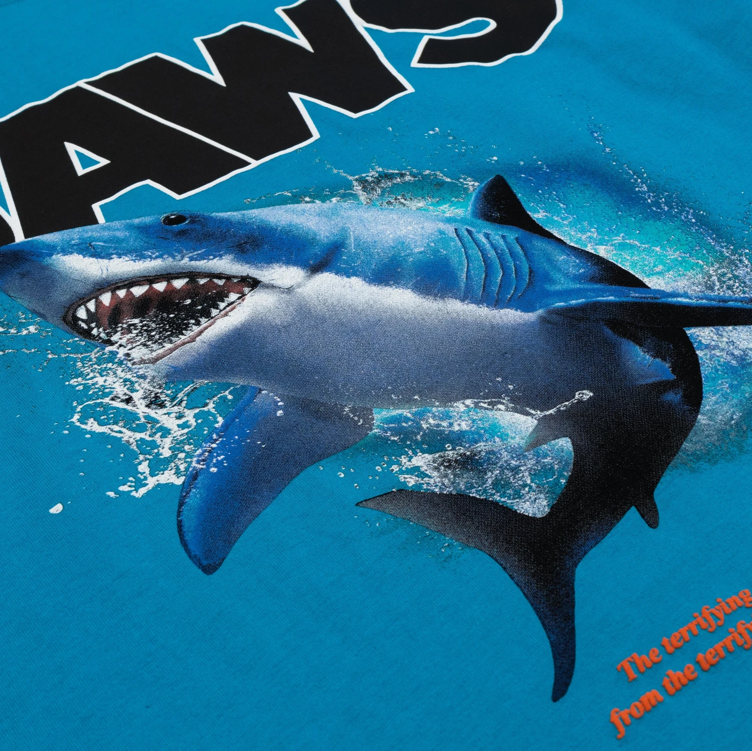 The Best Seller tee features screen print graphics with puff print details. The Jaws x Shoe Palace collection is exclusively available online at shoepalace.com and Shoe Palace retail locations.
