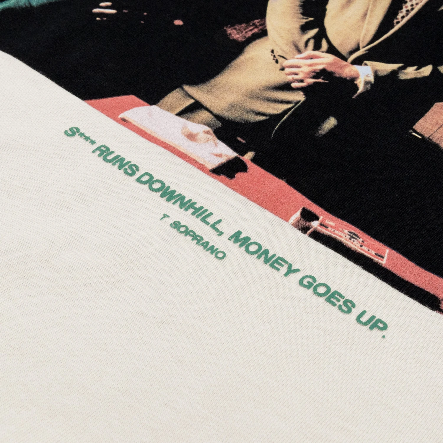 The Shoe Palace x The Sopranos Money Tee can only be found at Shoe Palace retail locations and on shoepalace.com. The collection is dedicated to the television classic, The Sopranos. The tee is made of 100% cotton. The Shoe Palace x The Sopranos Money Tee will make you feel like a part of the family and can only be found at Shoe Palace.