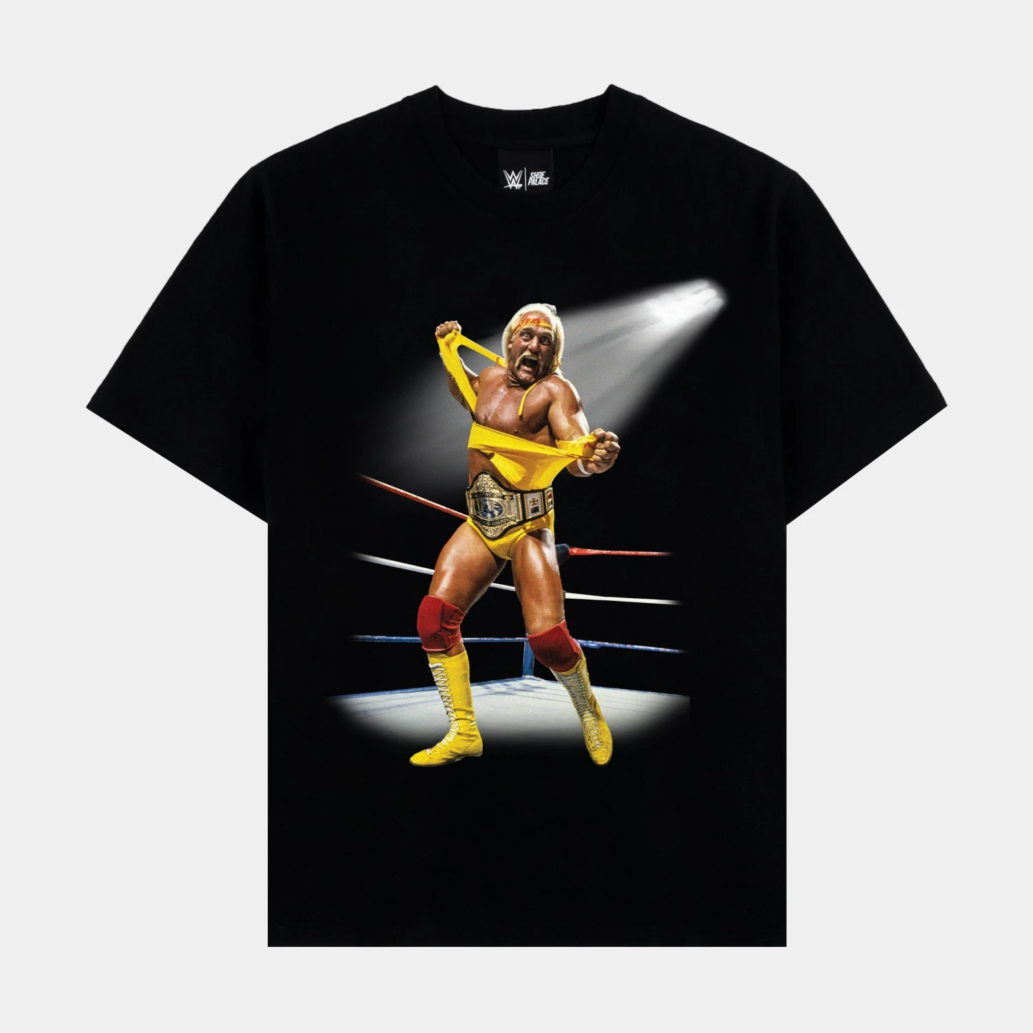 Shoe Palace is teaming up with the WWE for a larger than life collection. The collection includes apparel pieces dedicated to icons like Hulk Hogan, Stone Cold and The Undertaker. This Hulkamania Washed Tee captures the style of Hulk Hogan. Hulkamania is running wild at Shoe Palace. The Hulkamania tee is made of 100% cotton.